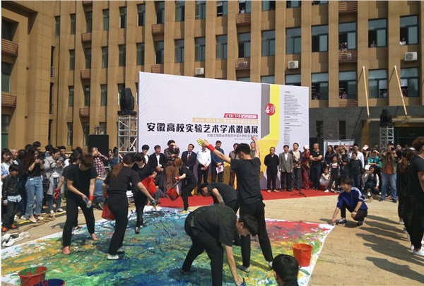 4月22日上午,第三届合肥双年展实验项目2017年“华信智原杯”安徽高校实验艺术学术邀请展在安徽工商职业学院庐阳校区艺术空间隆重开幕。宾虹艺术学院环艺教研室主任沈杨带领兰亭书画协会、创意协会等学生社团及2015级会展专业和部分2016级艺术类专业学生赴工商职业学院观展。
