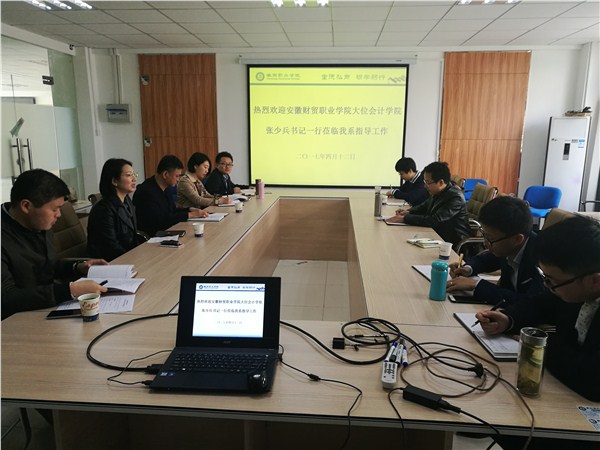 4月12日上午,大位会计学院党总支副书记张少兵、雷青梅率团总支书记沈丽萍以及专职辅导员一行,前往徽商职业学院会计系学习调研学生管理和党建相关工作。徽商职业学院会计系党总支书记艾敏、团总支书记刘畅、宣传委员张玲等与我院考察组举行了座谈交流。
