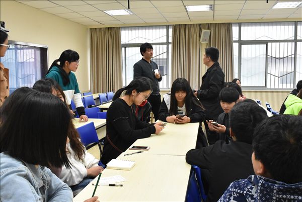 学生互动中,两院参赛团队就各自竞赛选题、参赛策划书及相关内容交流了看法,并互相提出了参考性意见。
