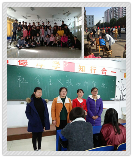 高渗透践行,学生党员、入党积极分子、团总支、学生会、中特会成员、班委带头践行,从身边事做起,团结互助,以信仰的力量带头学习、带头服务、带头创新,在同学们身边以点带面,引领示范。