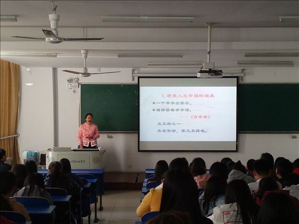 3月29日下午,在6102教室,朱熹文旅学院传统文化大讲堂上,安徽国祯书院副院长王灿老师阐释了中华传统文化中关于孝道的观点和历史传承。朱熹文旅学院入党积极分子、团学干部、共青团员代表150余名聆听了讲座。