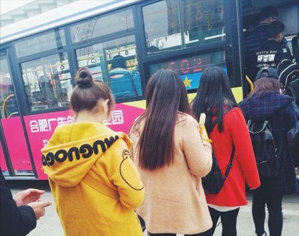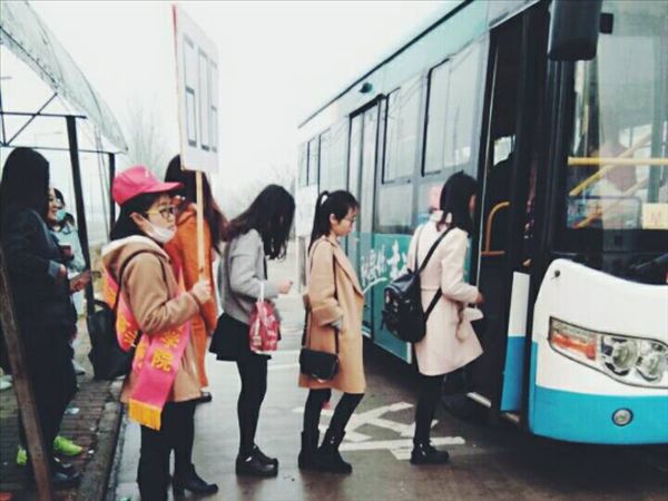 在602、606路车的财贸学院站,志愿者们组建爱心小分队,统一佩戴“安徽财贸职业学院”绶带,对乘车中的不文明行为进行劝导:“请大家排队有序上车,争做文明乘客!”。活动得到了公交公司和周边居民的赞扬。