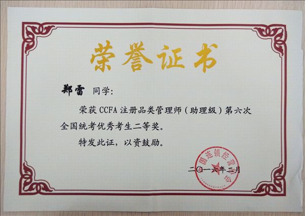 日前,由中国连锁经营协会(CCFA)主办的2016连锁业校企合作委员会年会、2016中国零售业博览会在苏州召开,会议揭晓了中国连锁业协会(CCFA)注册品类管理师(助理级)第六次全国统考先进培训机构名单,我院行知管理学院荣获一等奖,连锁经营管理专业2014级学生郑雷获得第六次全国统考优秀考生二等奖。