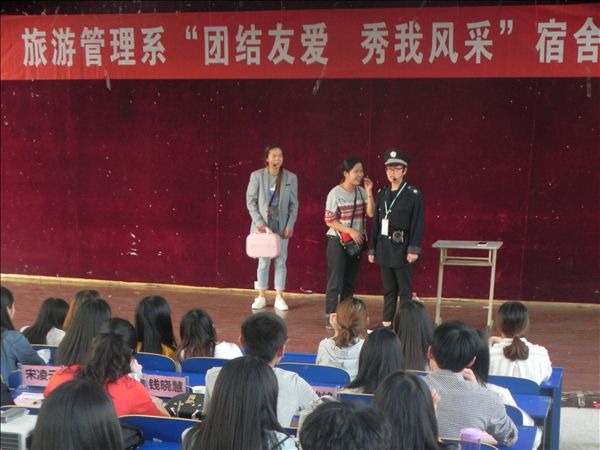 5月11日晚,旅游管理系“团结友爱,秀我风采”宿舍才艺大赛在5103教室举行。系党总支副书记宋凌云、旅游教研室主任钱晓慧及2015级各班辅导员出席比赛活动并担任评委。