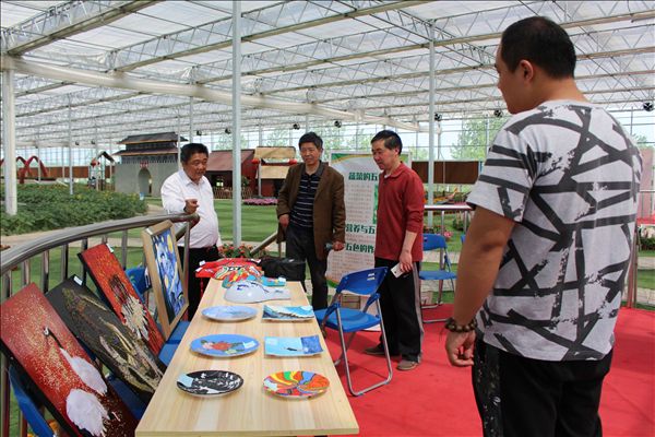 在和县第三届春季农业嘉年华暨安财贸艺术设计系师生成果作品展中,我院师生共展出沥粉画、漆画、创意设计、社火马勺等作品百余幅,深受当地领导及游客的好评,展出时间为5月1日至五月19日。和县台湾农民创业园管理委员会还评出了6幅最优作品,作者分别为熊善豪、卢水苗、苏泽、金冬梅、王秀、何学祁。通过此次合作,双方进行了深入地交流,并达成长期合作的意向。