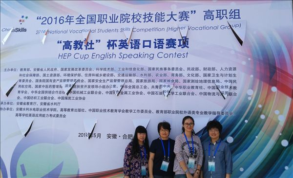 5月12日上午,由安徽水利水电职业技术学院承办的2016年“全国职业院校技能大赛”英语口语赛项的决赛在合肥大剧院举行,旅游管理系公共英语教研室田南竹主任、鲍秋红、刘晰、陈琴等四位老师赴现场观摩学习。
