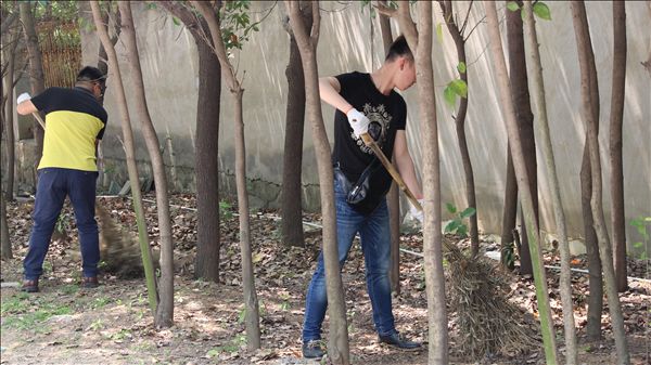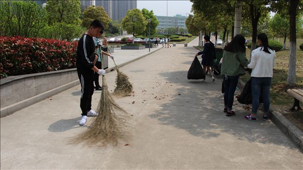 4月13日中午,行知管理学院党总支与远成物业管理公司共同发出校园环保倡议“清扫校园、携手共建校园文明”。倡议发出后,行知管理学院60多位学子立刻开展了校园环保行动。