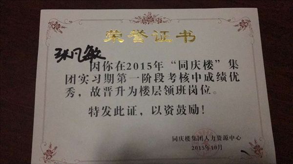 部分同学由于在企业的出色表现,受到了企业的特别嘉奖,充分展现了财贸学子的专业素质和职业素养。
