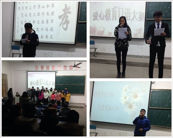 12月23日中午,中专部举办第五届爱心教育口语大赛,13名选手参加了比赛。中专部领导班子和辅导员老师担任了比赛的评委。