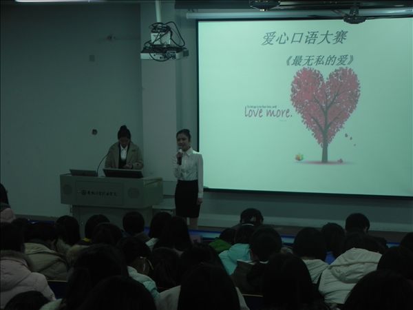 身负关爱与责任,心系感恩与回馈。12月9日下午,旅游管理系“爱心口语大赛”在6103教室举行。系党总支副书记宋凌云、学生秘书汪双及专职辅导员孙俊峰、王亚丽等老师担任评委。
