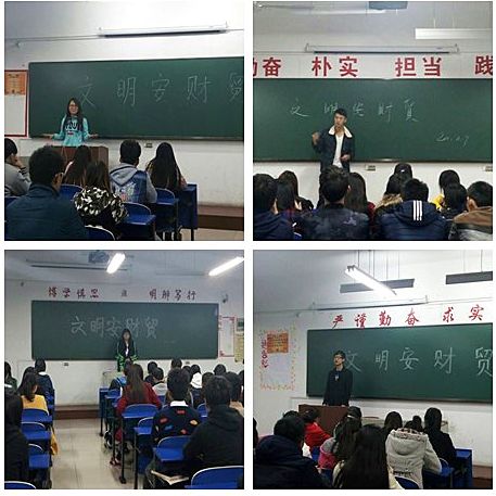 文明安财贸,美丽大学生。11月9日晚,雪岩贸易学院在2015级新生中组织开展“文明安财贸”主题大讨论,引导同学们热议身边的文明事和文明人。