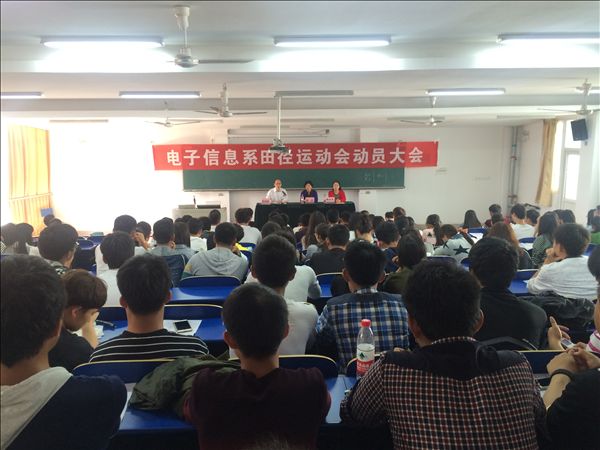 10月15日,电子信息系召开学院第14届田径运动会动员会。系党总支书记程众、系副主任张成叔、学生秘书梅云凤出席了动员会。
