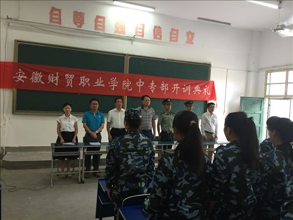 9月8日上午,中专部2015级新生军训开训典礼在E1005教室隆重举行。中专部主任张爱民,副主任徐道根、杨声,合肥陆军军官学院教官李亮、刘恒峰,以及2015级新生、辅导员出席了典礼。