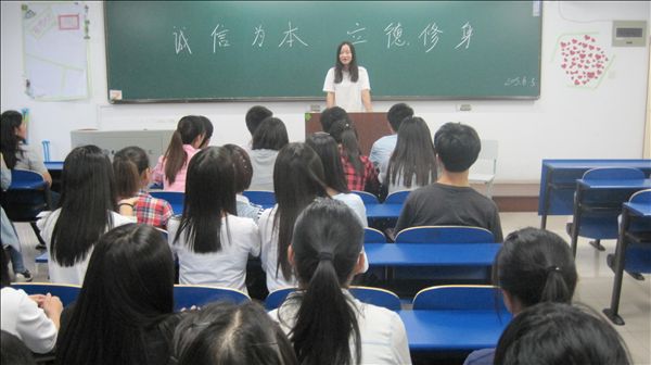 6月3日晚,雪岩贸易学院组织2014级各班级召开以“诚信为本,立德修身”为主题的班会。