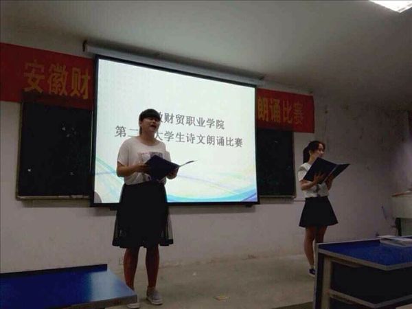 科研处副处长席清才,基础部主任王静、马凌云老师、张智老师,旅游管理系汪双老师作为评委出席了朗诵大赛。同学们不仅饱含深情的诵读了艾青的《大堰河 我的保姆》等经典诗作,而且比赛还涌现出了许多情感真挚、文笔清新、立意深刻的原创作品。最终,电子信息系移动1401班王倩、周玉林凭借原创作品《中国梦,我的梦》以及富有感染力的诵读获得全场最高分92.7分,荣获一等奖。财税金融系农金1401班周倩倩、旅游管理系旅游1301班许凤荣获二等奖,旅游管理系酒店1402班沈依然、大位会计学院国会1402班高洁、雪岩贸易学院营销1401班赵代萍荣获三等奖。