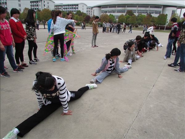 比赛要求每个班级形成一组,每组由五个人组成。比赛中,各小组成员都尽自己所能展开自己柔韧的身体,双腿由“人”字型缓缓下压,慢慢成为一条线。比赛小组的五人相互连接、相互协作、相互配合。酒店1402班荣获“最长腿”第一名,商英1402班获第二名,旅游1401班获第三名。