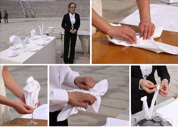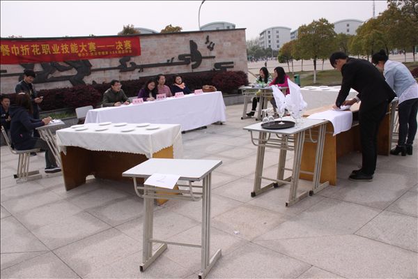 大赛一等奖获得者酒店1302程凯丽同学说:餐巾折花是酒店专业的基本技能,这次以赛会友,不仅让我们酒店专业的学生有了展示专业的舞台,也让学院其他院系更加了解我们的专业。