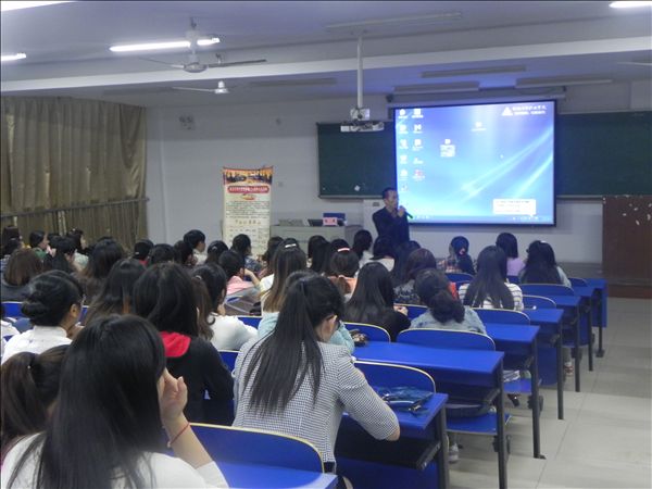 10月23日晚,浙江久久太阳电子商务有限公司总经理任武应旅游管理系邀请,以“就业面向基层”为题,为全体2012级商务英语专业学生上了一堂生动的就业指导课。党总支副书记宋凌云、商务英语教研室主任谢峰出席了讲座。