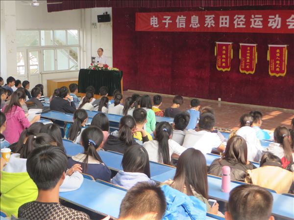 10月14日中午,电子信息系对参加校十三届运动会的全体运动员进行了赛前总动员,并就近期的训练安排和校运会期间的工作进行了部署。
