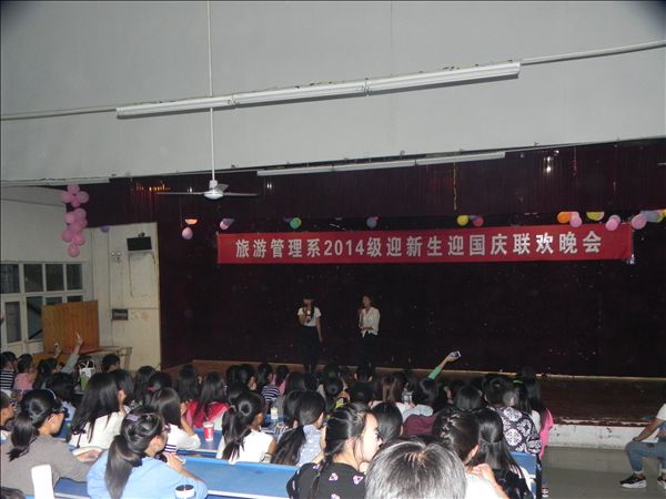 9月24日晚,旅游管理系学生会文艺部组织策划了一台“迎新生迎国庆”联欢会, 新老同学同台联欢,现场热闹温馨。