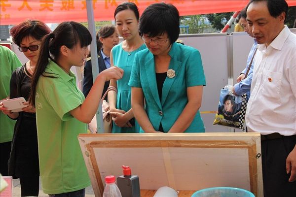 揭牌仪式后,领导们还参观了爱心义卖的现场,对艺术设计系学生运用专业所长弘扬志愿精神表示赞赏。