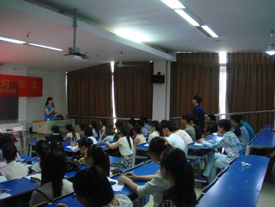 签约仪式后,孔晶晶作了企业宣讲,并与在场的同学们开展了互动交流。
