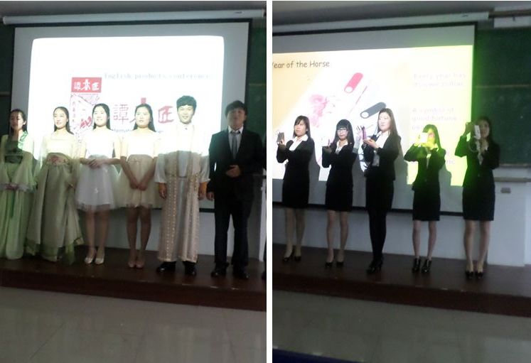 4月25日,国商专业在6302教室举办了英文产品发布会比赛。学生们分成15个组,在专业老师马诗琴、刘琦、王潇、尚海燕、张琼的指导下,完成了市场调研、资金筹集、产品采购、广告宣传、英文产品发布会准备等全部工作,最终用全真模拟的方式展现准备内容。同学们还创新性地依据产品特色穿插了小品、歌舞、古筝现场演奏等各种形式才艺表演,高潮迭起。