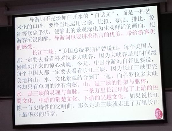 日前,旅游管理系邀请了文化和旅游部导游培训师资库专家全国优秀导游员刘自若走进教学课堂,讲解“如何创作优秀的导游词”。