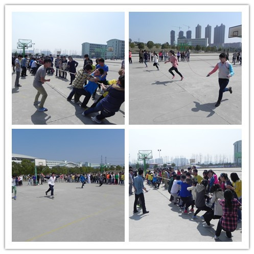 沐浴三月和煦暖阳,青春在阳光下绽放。结合院团委《关于开展大学生“走下网络、走出宿舍、走向操场”主题群众性课外体育锻炼活动的通知》和基础部《关于开展大学生阳光体育活动的通知》要求,3月12日、17日中午,财税金融系在篮球场分别举行班级拔河和跳绳迎面接力赛选拔赛。