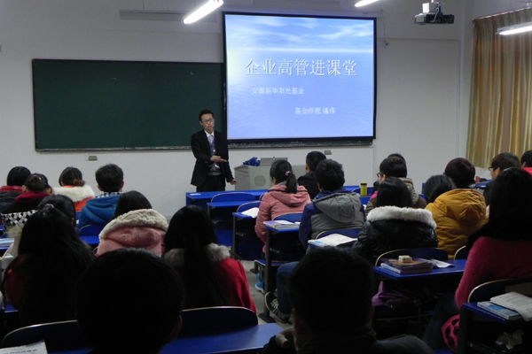 12月16日,安徽新华阳光基金管理公司基金经理、2008级证券与期货专业校友潘伟来到学院,与财税金融系证券1201、证券1202班全体同学分享了自己在校学习经验、目前工作情况以及行业相关信息。