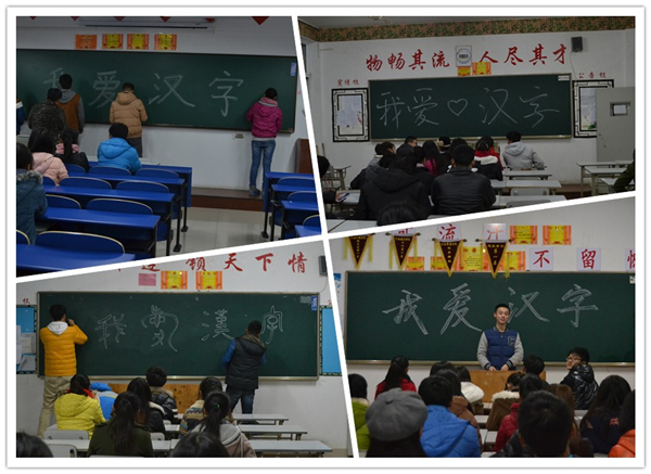 本次活动以“我爱汉字”小演讲和“汉字拼写”两个环节组成。生动活泼的演讲让同学拾起了儿时学写汉字时的快乐;“汉字拼写”使各班级的现场气氛更加热烈,主持人念出词语及相应的解释,同学们以小组的形式,在黑板上及时写出正确规范的汉字。