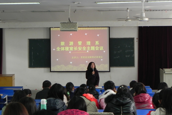 11月26日中午,,旅游管理系在5102教室召开了寝室长安全教育主题会议,系党总支副书记宋凌云出席了会议。