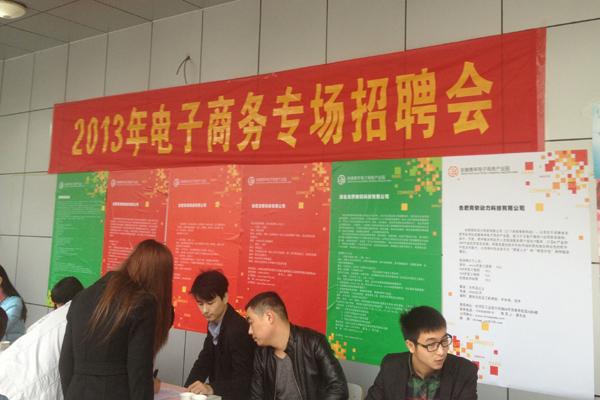 11月3日上午,2013年电子商务专场招聘会在综合楼一楼大厅举行。本场招聘会由雪岩贸易学院主办、淘宝大学安徽省运营中心协办、学院电子商务协会承办,来自省内外26家企业前来进行招聘,所涉岗位包括网络销售、运营、客服、美工等。