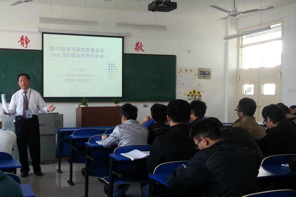 10月23日,学院校企合作企业北京阿博泰克北大青鸟信息技术有限公司委派安徽服务中心凌滨总经理来到学院召开就业工作启动会,并为2011级青鸟特色班同学做了一场题为“IT行业就业形势与对策”的讲座。