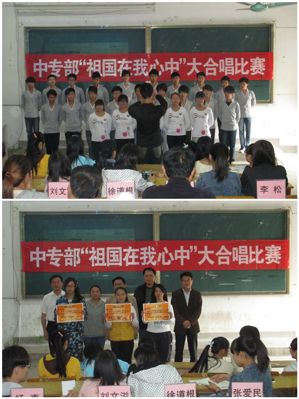 10月16日中午,中专部“祖国在我心中”大合唱比赛隆重拉开帷幕, 中专部主任张爱民,副主任徐道根、杨声及部分教师担任了大赛评委。