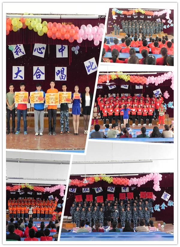 217名新生饱含爱国爱校热情,齐声高唱《安财院之歌》、《祖国不会忘记》、《映山红》,抒发《在灿烂阳光下》健康成长、励志《精忠报国》的情怀。同学们用青春歌声唱响美丽安财,表达对共同家园的眷恋与祝福。本次比赛厉行节约,参赛班级的统一服装采用军训服与合作企业文化衫,参赛班级虽不多,但每个班级代表队上场,都有各班啦啦队齐声加油助威,整个比赛过程隆重热烈。赛后评比环节的间歇,新生表演的二胡独奏《赛马》再次掀起观众如潮的掌声,做到了“活动开支减少,活动效果不减;班级数量减少、比赛热情不减;新生人数减少,艺术品位不减”。