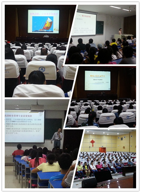 9月5日、9日和10日晚,大位会计学院分别为2013级会计电算化等四个专业的新生进行了入学专业教育,谢梅花、龙霞、王晓岩和李春振分别担任了会计电算化、审计实务、国际会计和财务管理专业的主讲老师。