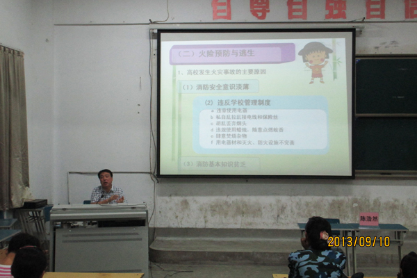 9月10日晚,中专部邀请学院保卫处副处长陈浩然为2013级新生举办了一场“安全在我心中”入学安全教育讲座。