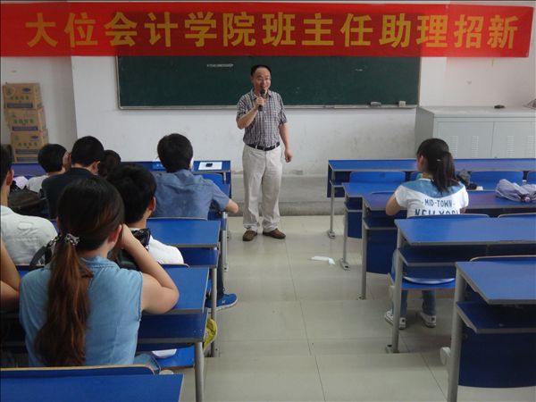 6月18日中午,大位会计学院在5102教室进行2013级班主任助理的最后一轮选拔工作。党总支书记陶云龙,学生秘书武军,专职辅导员齐杰、马兰燕、王繁担任评委。