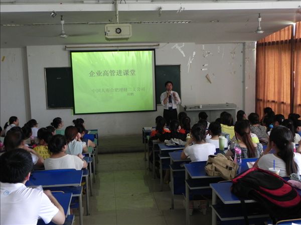 6月17日上午,中国人寿合肥分公司理财部经理邱鹏来到我院,在5201教室为2011级投资与理财专业110多名同学讲授《保险市场基础知识》课程相关内容。