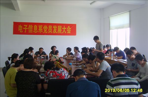 6月5日下午,电子信息系党总支2013年上半年党员发展暨转正大会在系办公室召开,教师党员、预备党员和党员发展对象共51人参加了会议,大会由系党总支书记程众主持。