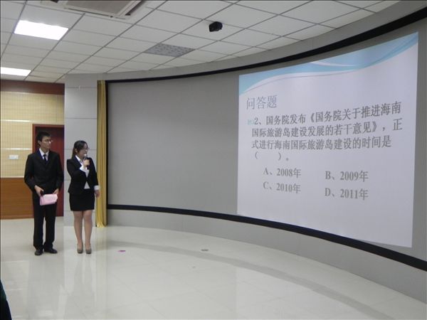 旅游1202班李琼和旅游1202班姚芳分别介绍了革命摇篮、红色的根据地井冈山和拥有世界自然与文化双遗产、世界地质公园两项世界级桂冠的黄山景区,凭借着他们出色的现场发挥,双双荣获二等奖;姚芳同时又获得了“最佳智慧奖”。商英1203班许瑞余,旅游1201班戈苗苗和王欣获三等奖,王欣用单口相声赢“最佳风采奖”。国商1201班潘媛媛以青春阳光的形象获得了本次大赛“最佳形象奖”。