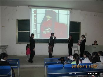 4月19日,国商2011级144名同学分成21个组在5302教室举办英文产品发布会,汇报实训成果。在专业老师马诗琴、张琼、刘琦、尚海燕的指导下,同学们完成了市场调研、资金筹集、产品采购、广告宣传、英文产品发布会准备等全部工作,最终用全真模拟的方式展现准备内容。发布会中,同学们“八仙过海各显神通”,依据产品特色穿插了小品、歌舞、萨克斯古筝现场演奏、当场作画书法等各种形式的才艺表演,高潮迭起。