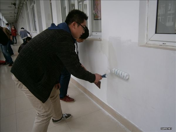 同一天,该系第33期和34期入党积极分子们自发组织清除教学一号楼教室墙壁上的字迹。他们带着粉浆和粉刷,将墙面刷粉一新,为身边的同学们营造一个干净整洁的学习环境。
