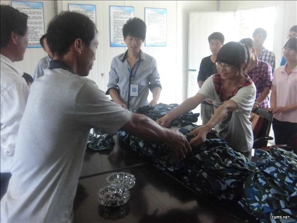 9月27日上午,行知管理学院实践部牵手财税金融系实践部志愿者们将募集来的百余件2012级新生军训服装送到了正在为财贸学院建设挥洒汗水的农民工朋友们手里,为农民工兄弟送去秋的“温暖”。