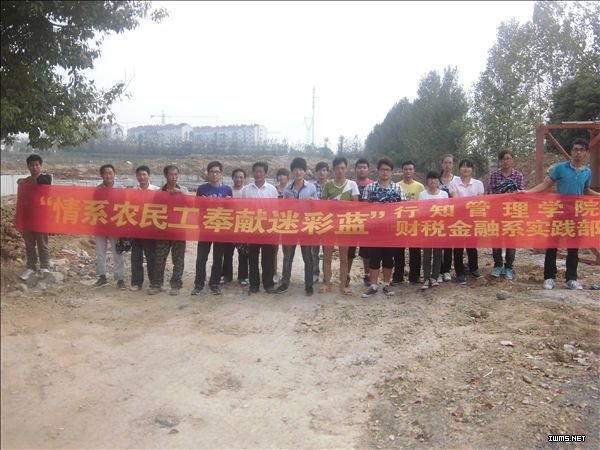 据悉,该院实践部与财税金融系实践部在2012级新生军训结束后举办了为期一周的“情系农民工、赠送迷彩蓝”募捐活动,通过两个系实践部志愿者的共同努力和2012级新生的爱心捐赠,共募集百余件迷彩服。志愿者们通过与施工单位领导的沟通,将百余件迷彩服赠送给正在为学院建设发展的农民工朋友手里。