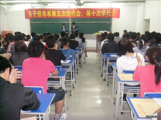 4月11日下午,电子信息系第五次团员代表大会、第十次学生代表大会在7201教室隆重召开,学院关工委副主任王恩华,学生处处长薛卫敏,电子信息系党总支书记程众,系副主任张成叔出席了大会。
