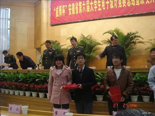 11月27日,全国大学生电子设计竞赛安徽赛区暨“威狮”杯安徽省第六届大学生电子设计竞赛颁奖典礼在合肥解放军电子工程学院隆重举行,我院电子信息系应用电子专业费亚玲、郭乐园和佘宗美等三位同学组成的代表队荣获安徽省高职高专组三等奖。