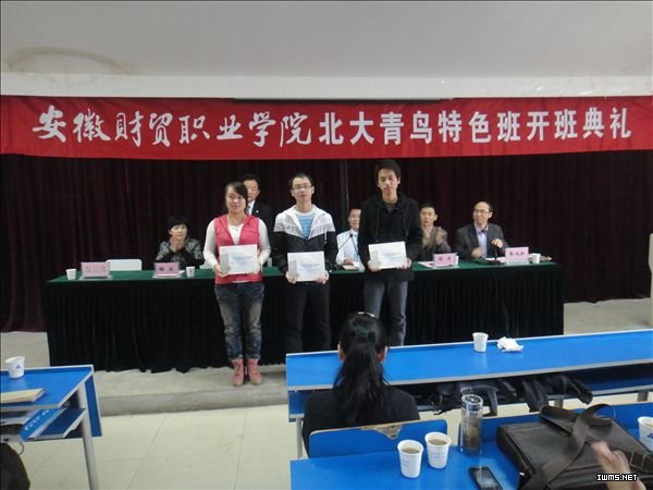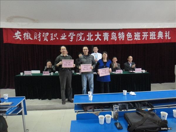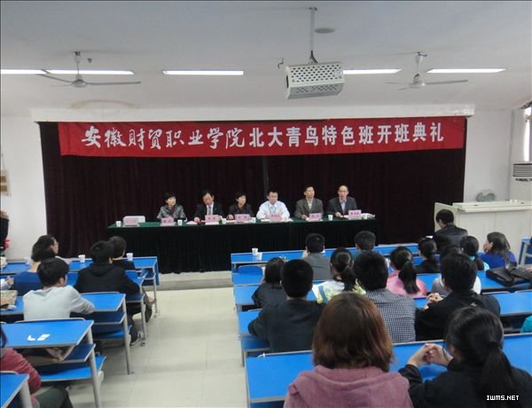 10月13日中午,校企合作共建“北大青鸟特色班”2011级开班典礼在5102教室举行。教务处处长余敏、北大青鸟总部学术支持部经理许悦欣、北大青鸟总公司安徽部总经理凌滨、电子信息系主任刘力、党总支书记程众出席了开班典礼。开班典礼由系副主任张成叔主持。