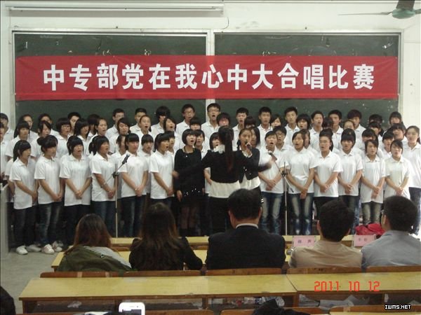 10月12号下午,东校区一楼阶梯教室歌声嘹亮,中专部“党在我心中”大合唱比赛隆重举行。